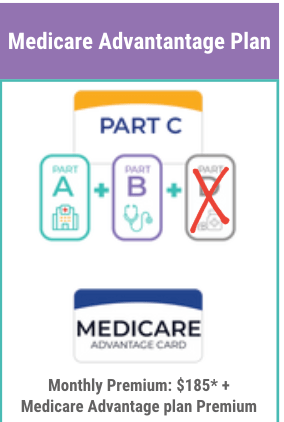 A Medicare Advantage plan combines Part A + Part B + usually Part D into one plan.